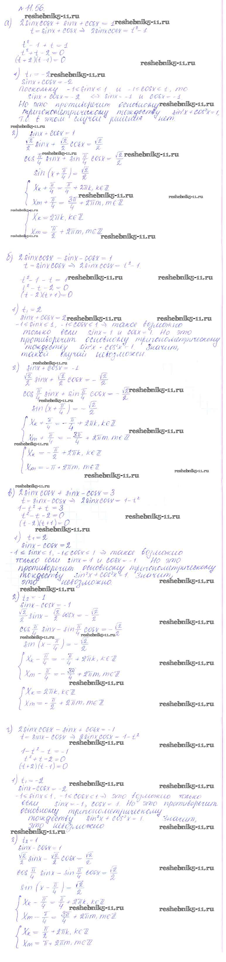 Готовая домашняя работа с ответами по Алгебре за 10 класс Никольский, Потапов, Решетников, Шевкин Учебник МГУ - школе Базовый и углубленный уровень Просвещение 2015 ФГОС - §11. Тригонометрические уравнения и неравенства 56