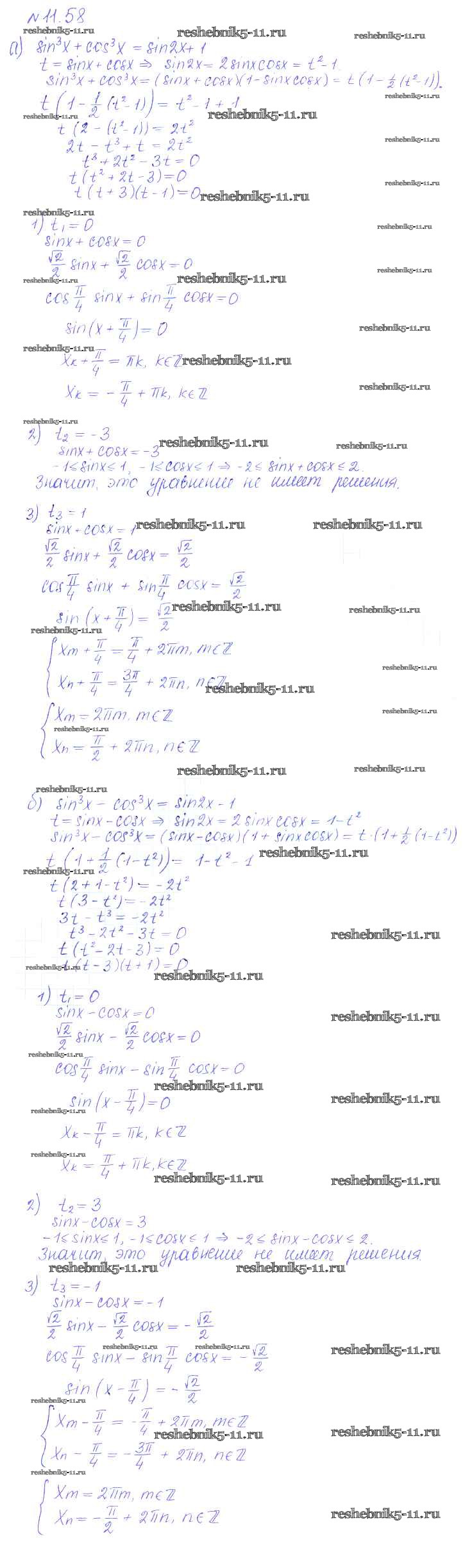 Готовая домашняя работа с ответами по Алгебре за 10 класс Никольский, Потапов, Решетников, Шевкин Учебник МГУ - школе Базовый и углубленный уровень Просвещение 2015 ФГОС - §11. Тригонометрические уравнения и неравенства 58