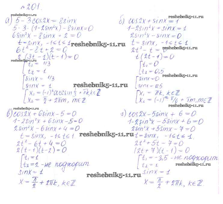 Готовая домашняя работа с ответами по Алгебре за 10 класс Никольский, Потапов, Решетников, Шевкин Учебник МГУ - школе Базовый и углубленный уровень Просвещение 2015 ФГОС - Задания для повторения 201