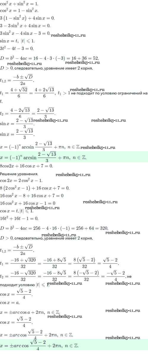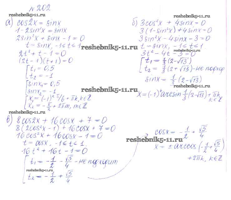 Готовая домашняя работа с ответами по Алгебре за 10 класс Никольский, Потапов, Решетников, Шевкин Учебник МГУ - школе Базовый и углубленный уровень Просвещение 2015 ФГОС - Задания для повторения 202