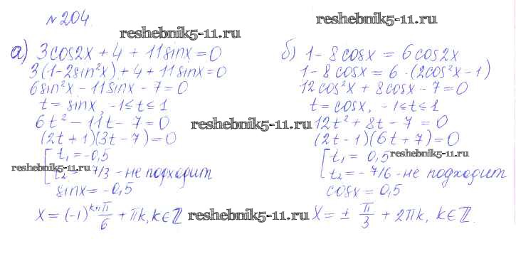 Готовая домашняя работа с ответами по Алгебре за 10 класс Никольский, Потапов, Решетников, Шевкин Учебник МГУ - школе Базовый и углубленный уровень Просвещение 2015 ФГОС - Задания для повторения 204