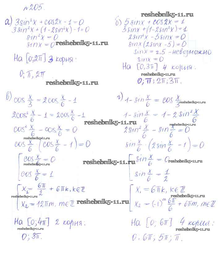 Готовая домашняя работа с ответами по Алгебре за 10 класс Никольский, Потапов, Решетников, Шевкин Учебник МГУ - школе Базовый и углубленный уровень Просвещение 2015 ФГОС - Задания для повторения 205