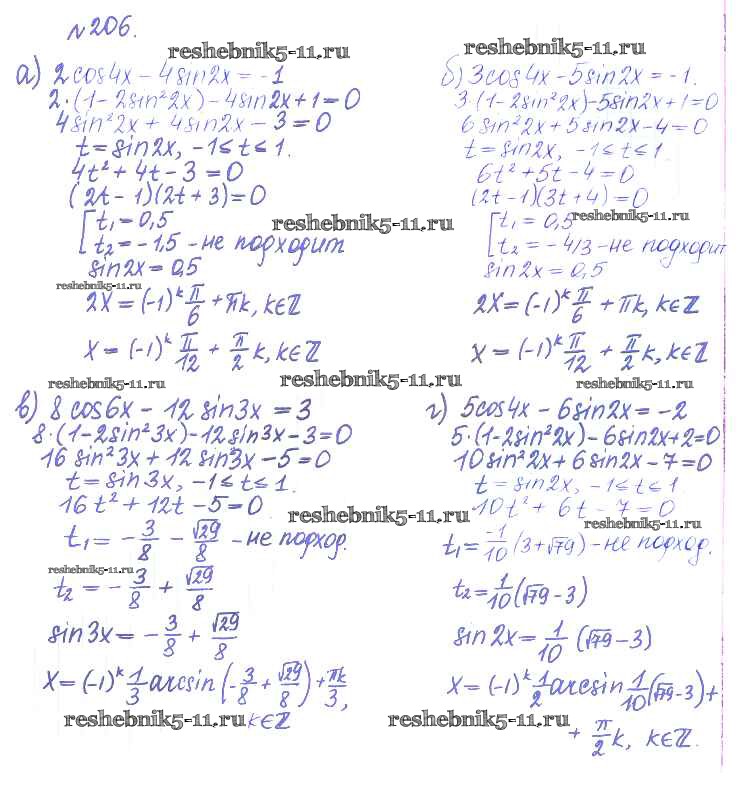Готовая домашняя работа с ответами по Алгебре за 10 класс Никольский, Потапов, Решетников, Шевкин Учебник МГУ - школе Базовый и углубленный уровень Просвещение 2015 ФГОС - Задания для повторения 206