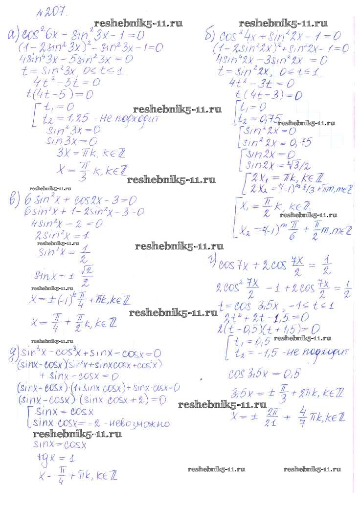 Готовая домашняя работа с ответами по Алгебре за 10 класс Никольский, Потапов, Решетников, Шевкин Учебник МГУ - школе Базовый и углубленный уровень Просвещение 2015 ФГОС - Задания для повторения 207