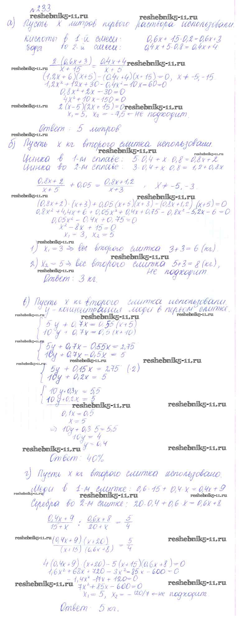 Готовая домашняя работа с ответами по Алгебре за 10 класс Никольский, Потапов, Решетников, Шевкин Учебник МГУ - школе Базовый и углубленный уровень Просвещение 2015 ФГОС - Задания для повторения 233