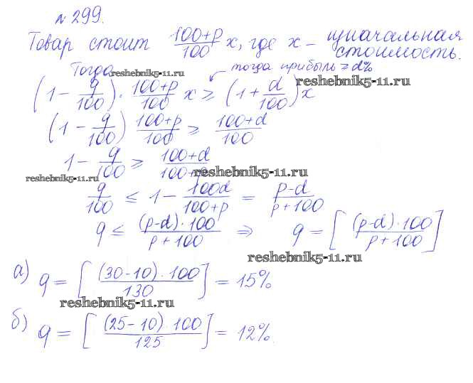 Готовая домашняя работа с ответами по Алгебре за 10 класс Никольский, Потапов, Решетников, Шевкин Учебник МГУ - школе Базовый и углубленный уровень Просвещение 2015 ФГОС - Задания для повторения 299