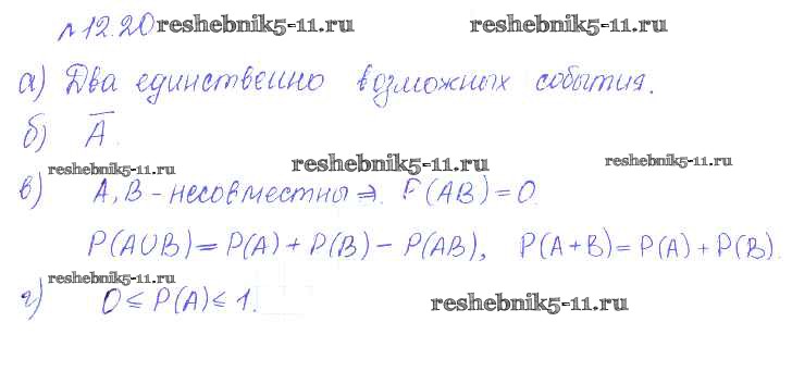 Готовая домашняя работа с ответами по Алгебре за 10 класс Никольский, Потапов, Решетников, Шевкин Учебник МГУ - школе Базовый и углубленный уровень Просвещение 2015 ФГОС - §12. Вероятность события 20