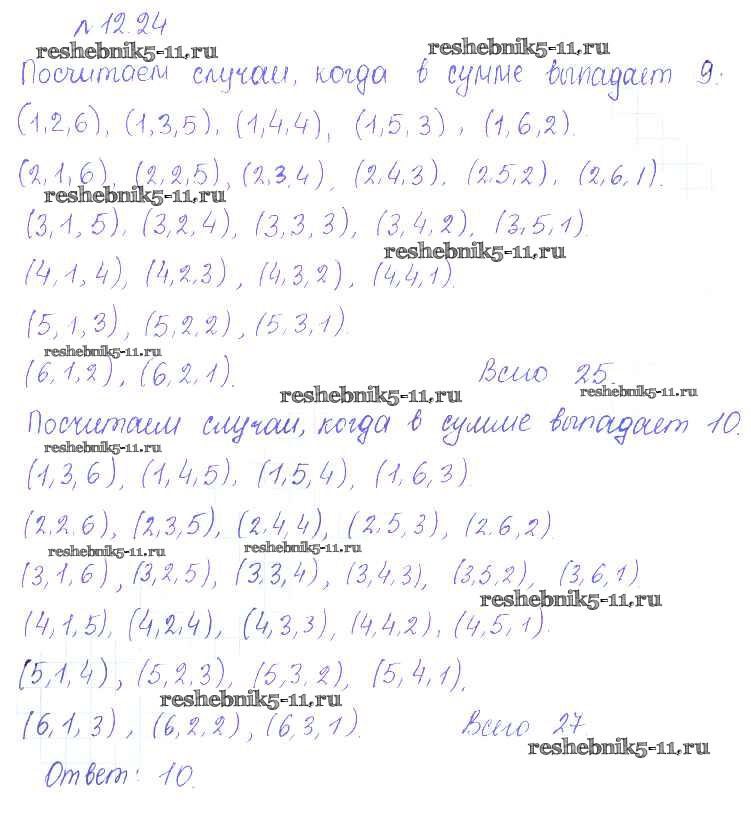 Готовая домашняя работа с ответами по Алгебре за 10 класс Никольский, Потапов, Решетников, Шевкин Учебник МГУ - школе Базовый и углубленный уровень Просвещение 2015 ФГОС - §12. Вероятность события 24