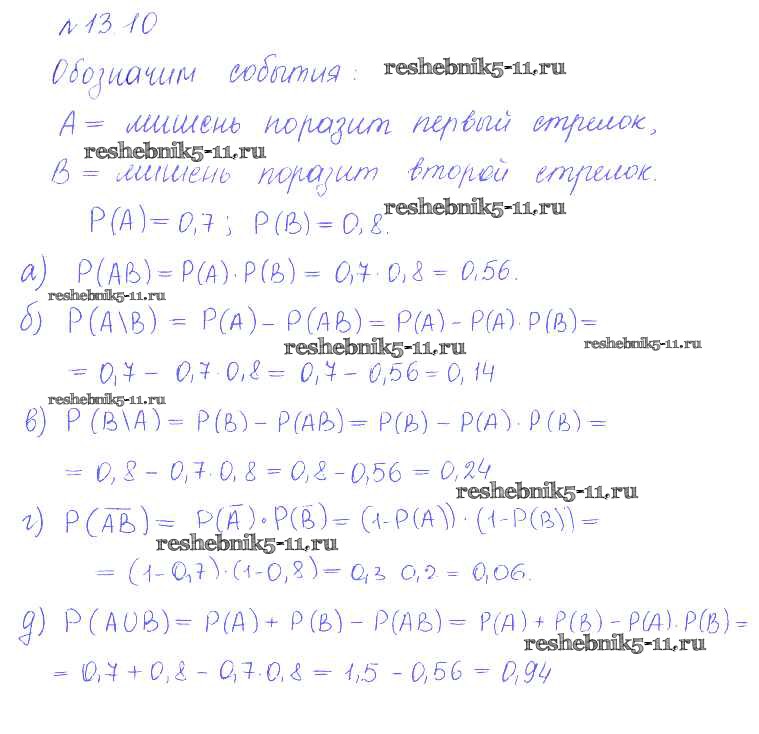 Готовая домашняя работа с ответами по Алгебре за 10 класс Никольский, Потапов, Решетников, Шевкин Учебник МГУ - школе Базовый и углубленный уровень Просвещение 2015 ФГОС - §13. Частота. Условная вероятность 10