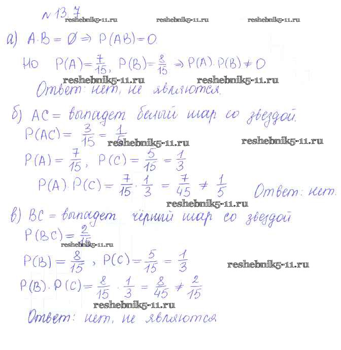 Готовая домашняя работа с ответами по Алгебре за 10 класс Никольский, Потапов, Решетников, Шевкин Учебник МГУ - школе Базовый и углубленный уровень Просвещение 2015 ФГОС - §13. Частота. Условная вероятность 7