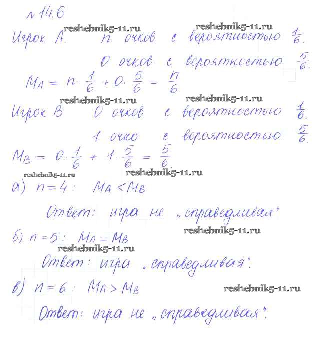 Готовая домашняя работа с ответами по Алгебре за 10 класс Никольский, Потапов, Решетников, Шевкин Учебник МГУ - школе Базовый и углубленный уровень Просвещение 2015 ФГОС - §14. Математическое ожидание. Закон больших чисел 6