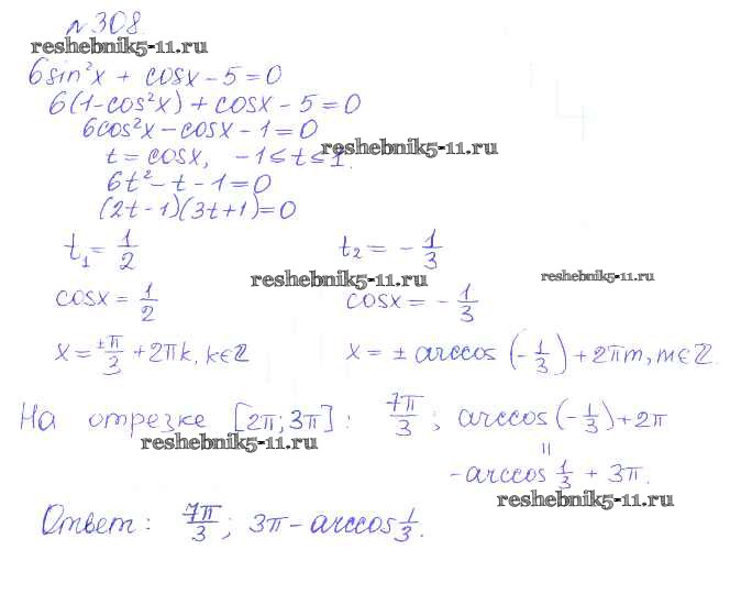 Готовая домашняя работа с ответами по Алгебре за 10 класс Никольский, Потапов, Решетников, Шевкин Учебник МГУ - школе Базовый и углубленный уровень Просвещение 2015 ФГОС - Задания для повторения 308