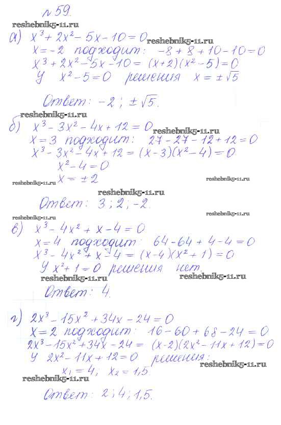 Готовая домашняя работа с ответами по Алгебре за 10 класс Никольский, Потапов, Решетников, Шевкин Учебник МГУ - школе Базовый и углубленный уровень Просвещение 2015 ФГОС - Задания для повторения 59