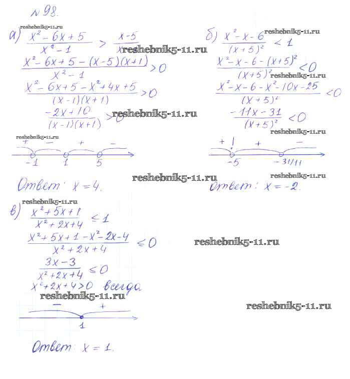 Готовая домашняя работа с ответами по Алгебре за 10 класс Никольский, Потапов, Решетников, Шевкин Учебник МГУ - школе Базовый и углубленный уровень Просвещение 2015 ФГОС - Задания для повторения 98