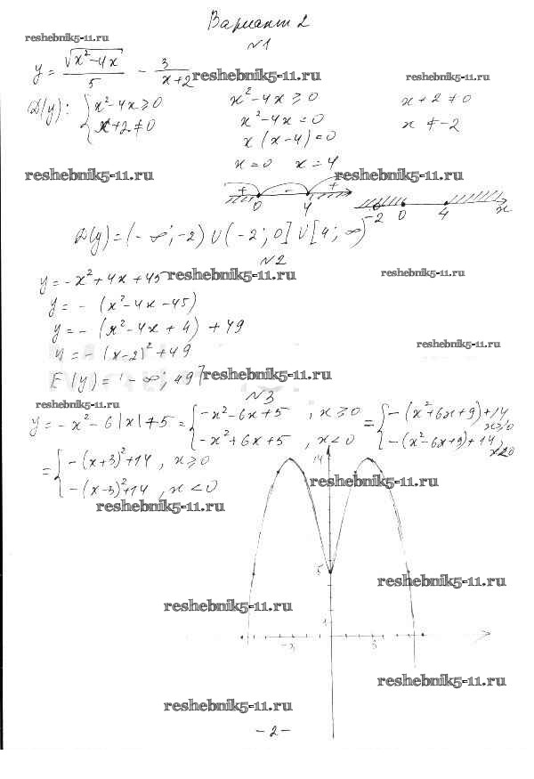 Готовая домашняя работа с ответами по Алгебре за 10 класс Александрова Самостоятельные работы Базовый уровень Мнемозина 2017 ФГОС - СР-1. Определение числовой функции, способы ее задания вариант 2