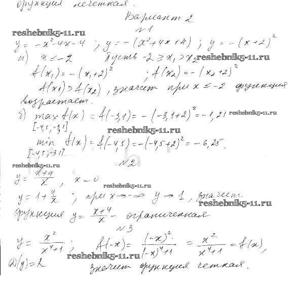 Готовая домашняя работа с ответами по Алгебре за 10 класс Александрова Самостоятельные работы Базовый уровень Мнемозина 2017 ФГОС - СР-2. Свойства функций вариант 2