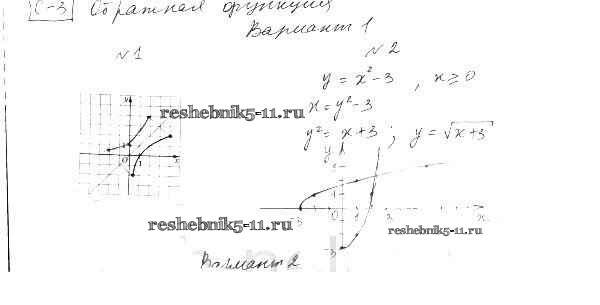 Готовая домашняя работа с ответами по Алгебре за 10 класс Александрова Самостоятельные работы Базовый уровень Мнемозина 2017 ФГОС - СР-3. Обратная функция вариант 1