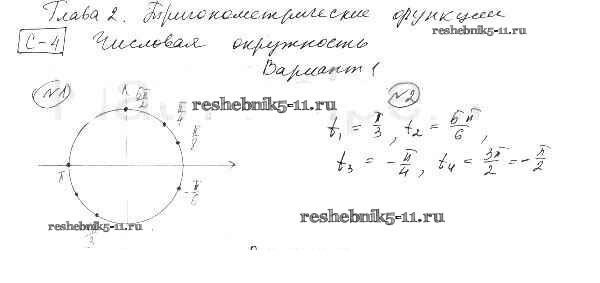 Готовая домашняя работа с ответами по Алгебре за 10 класс Александрова Самостоятельные работы Базовый уровень Мнемозина 2017 ФГОС - СР-4. Числовая окружность вариант 1
