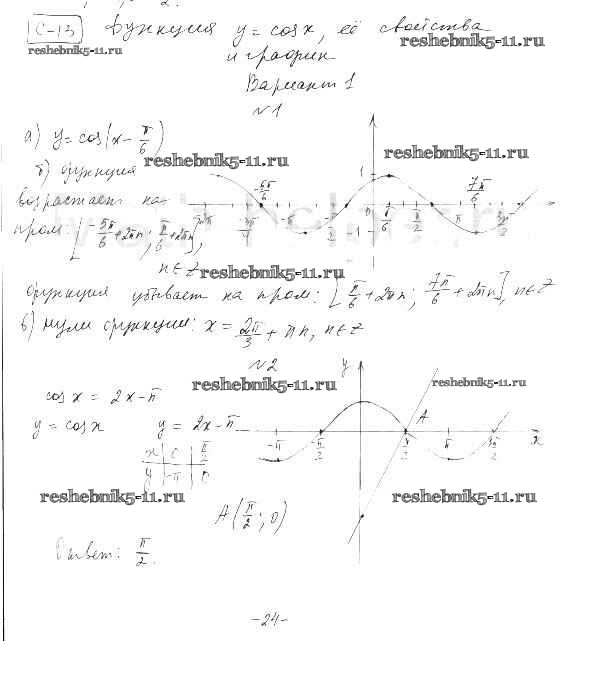 Готовая домашняя работа с ответами по Алгебре за 10 класс Александрова Самостоятельные работы Базовый уровень Мнемозина 2017 ФГОС - СР-13. Функция y=cos. x и ее график вариант 1