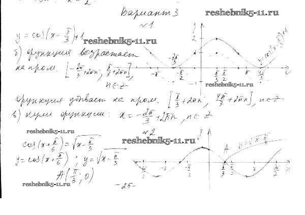 Готовая домашняя работа с ответами по Алгебре за 10 класс Александрова Самостоятельные работы Базовый уровень Мнемозина 2017 ФГОС - СР-13. Функция y=cos. x и ее график вариант 3
