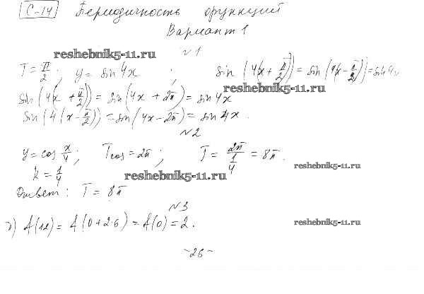 Готовая домашняя работа с ответами по Алгебре за 10 класс Александрова Самостоятельные работы Базовый уровень Мнемозина 2017 ФГОС - СР-14. Периодичность функций вариант 1
