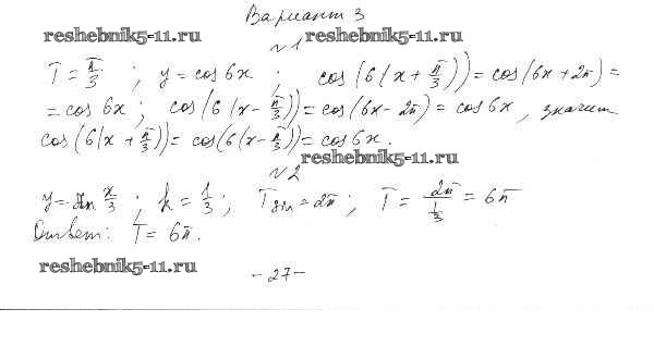 Готовая домашняя работа с ответами по Алгебре за 10 класс Александрова Самостоятельные работы Базовый уровень Мнемозина 2017 ФГОС - СР-14. Периодичность функций вариант 3