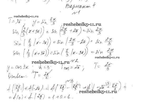 Готовая домашняя работа с ответами по Алгебре за 10 класс Александрова Самостоятельные работы Базовый уровень Мнемозина 2017 ФГОС - СР-14. Периодичность функций вариант 4