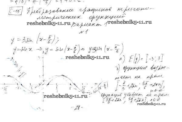 Готовая домашняя работа с ответами по Алгебре за 10 класс Александрова Самостоятельные работы Базовый уровень Мнемозина 2017 ФГОС - СР-15. Преобразование графиков тригонометрических функций вариант 1
