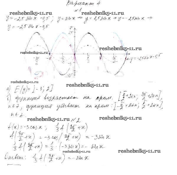 Готовая домашняя работа с ответами по Алгебре за 10 класс Александрова Самостоятельные работы Базовый уровень Мнемозина 2017 ФГОС - СР-15. Преобразование графиков тригонометрических функций вариант 4