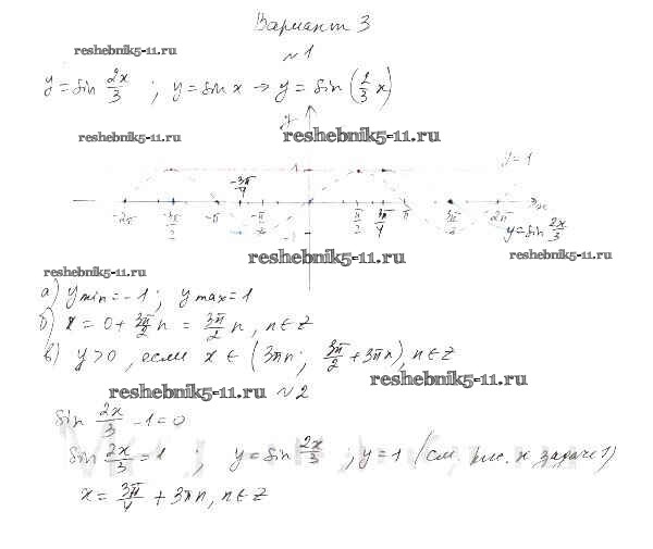 Готовая домашняя работа с ответами по Алгебре за 10 класс Александрова Самостоятельные работы Базовый уровень Мнемозина 2017 ФГОС - СР-16. Преобразование графиков тригонометрических функций вариант 3