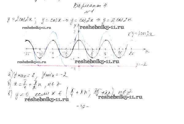 Готовая домашняя работа с ответами по Алгебре за 10 класс Александрова Самостоятельные работы Базовый уровень Мнемозина 2017 ФГОС - СР-16. Преобразование графиков тригонометрических функций вариант 4