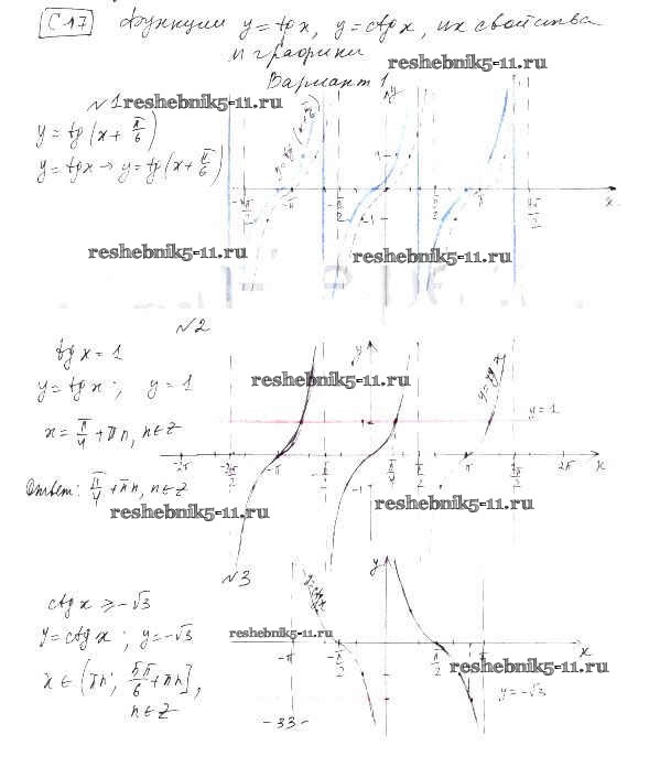 Готовая домашняя работа с ответами по Алгебре за 10 класс Александрова Самостоятельные работы Базовый уровень Мнемозина 2017 ФГОС - СР-17. Функции y=tg, x y=ctg x, их свойства и графики вариант 1