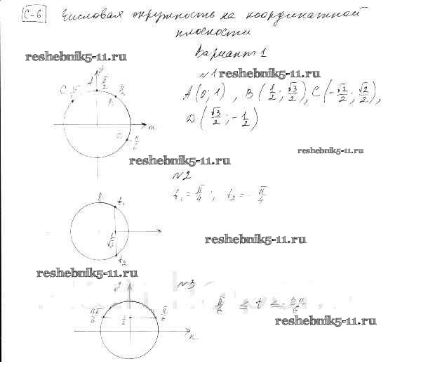 Готовая домашняя работа с ответами по Алгебре за 10 класс Александрова Самостоятельные работы Базовый уровень Мнемозина 2017 ФГОС - СР-6. Числовая окружность на координатной плоскости вариант 1