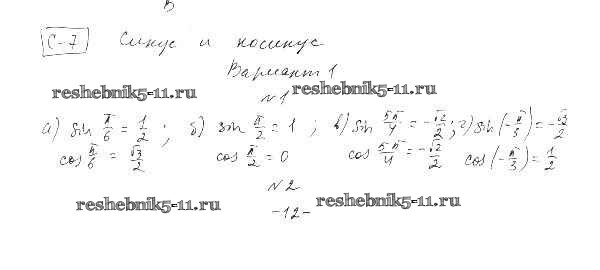 Готовая домашняя работа с ответами по Алгебре за 10 класс Александрова Самостоятельные работы Базовый уровень Мнемозина 2017 ФГОС - СР-7. Синус и косинус вариант 1