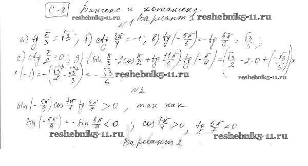 Готовая домашняя работа с ответами по Алгебре за 10 класс Александрова Самостоятельные работы Базовый уровень Мнемозина 2017 ФГОС - СР-8. Тангес и котангес вариант 1