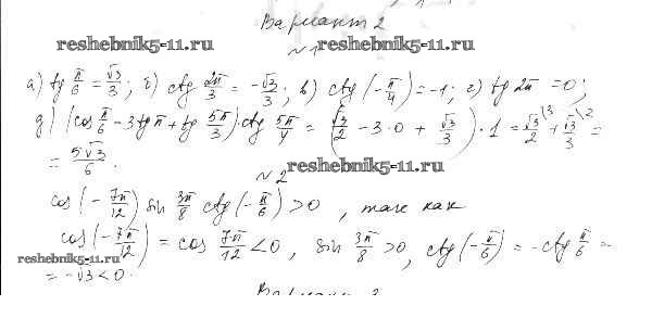 Готовая домашняя работа с ответами по Алгебре за 10 класс Александрова Самостоятельные работы Базовый уровень Мнемозина 2017 ФГОС - СР-8. Тангес и котангес вариант 2