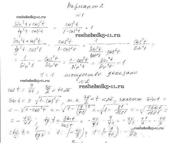 Готовая домашняя работа с ответами по Алгебре за 10 класс Александрова Самостоятельные работы Базовый уровень Мнемозина 2017 ФГОС - СР-9. Тригонометрические функции числового аргумента вариант 2