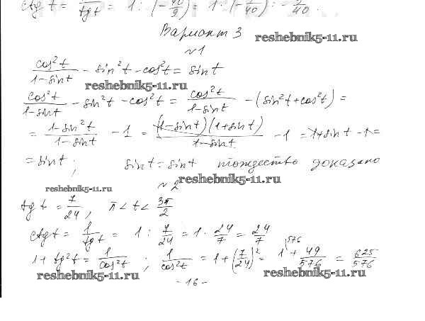Готовая домашняя работа с ответами по Алгебре за 10 класс Александрова Самостоятельные работы Базовый уровень Мнемозина 2017 ФГОС - СР-9. Тригонометрические функции числового аргумента вариант 3