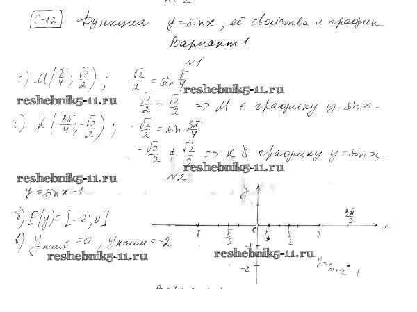 Готовая домашняя работа с ответами по Алгебре за 10 класс Александрова Самостоятельные работы Базовый уровень Мнемозина 2017 ФГОС - СР-12. Функция y=sin. x и ее график вариант 1