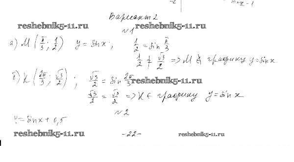 Готовая домашняя работа с ответами по Алгебре за 10 класс Александрова Самостоятельные работы Базовый уровень Мнемозина 2017 ФГОС - СР-12. Функция y=sin. x и ее график вариант 2