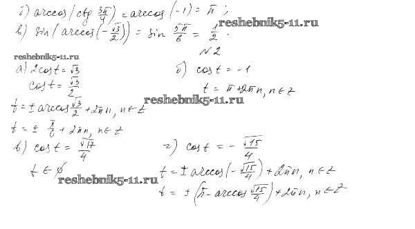 Готовая домашняя работа с ответами по Алгебре за 10 класс Александрова Самостоятельные работы Базовый уровень Мнемозина 2017 ФГОС - СР-18. Арккосинус и решение уравнения cos t=a вариант 3