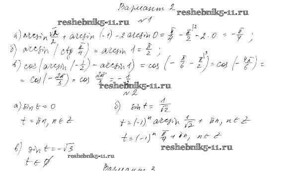 Готовая домашняя работа с ответами по Алгебре за 10 класс Александрова Самостоятельные работы Базовый уровень Мнемозина 2017 ФГОС - СР-19. Арккосинус и решение уравнения sin t=a вариант 2