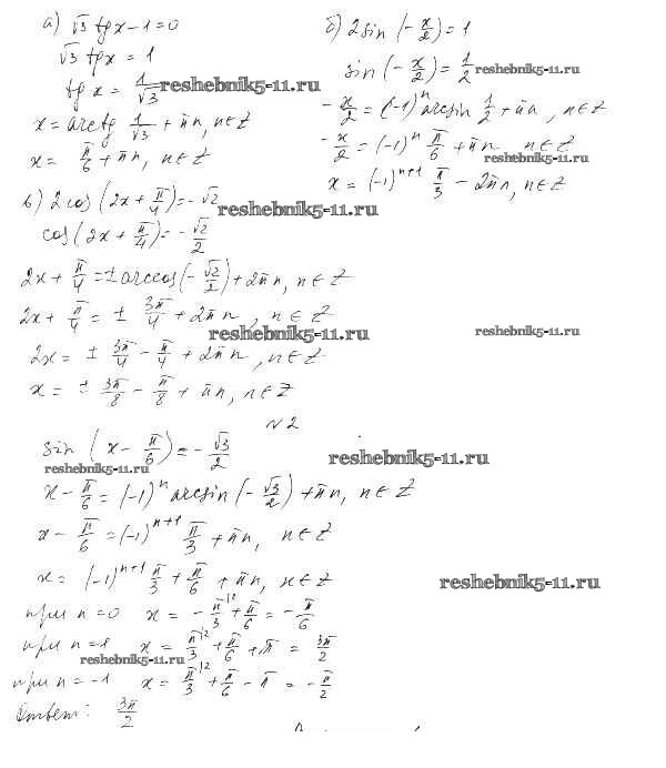 Готовая домашняя работа с ответами по Алгебре за 10 класс Александрова Самостоятельные работы Базовый уровень Мнемозина 2017 ФГОС - СР-21. Тригонометрические уравнения вариант 3