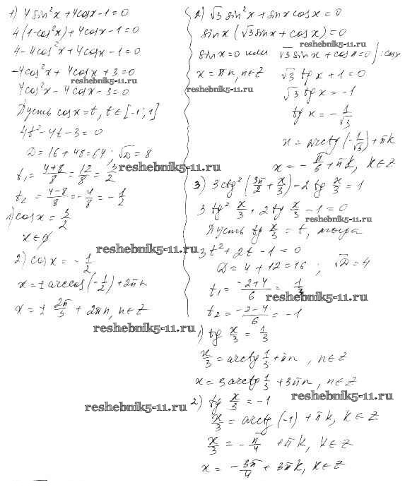 Готовая домашняя работа с ответами по Алгебре за 10 класс Александрова Самостоятельные работы Базовый уровень Мнемозина 2017 ФГОС - СР-22. Тригонометрические уравнения вариант 4