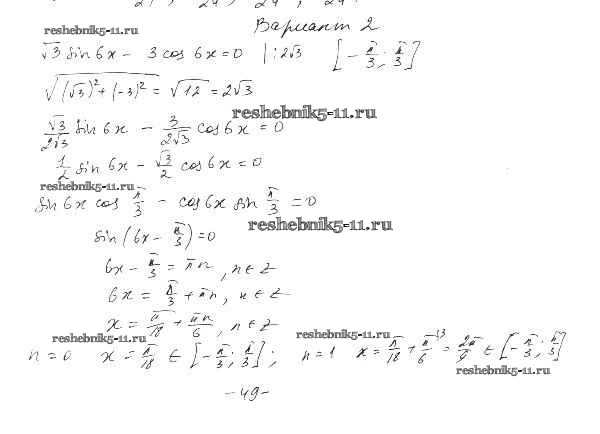 Готовая домашняя работа с ответами по Алгебре за 10 класс Александрова Самостоятельные работы Базовый уровень Мнемозина 2017 ФГОС - СР-23. Тригонометрические уравнения вариант 2