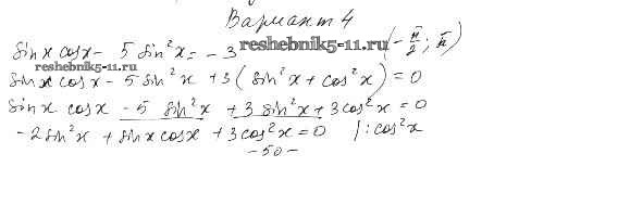 Готовая домашняя работа с ответами по Алгебре за 10 класс Александрова Самостоятельные работы Базовый уровень Мнемозина 2017 ФГОС - СР-23. Тригонометрические уравнения вариант 4