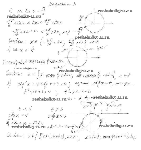 Готовая домашняя работа с ответами по Алгебре за 10 класс Александрова Самостоятельные работы Базовый уровень Мнемозина 2017 ФГОС - СР-24. Тригонометрические неравенства вариант 3