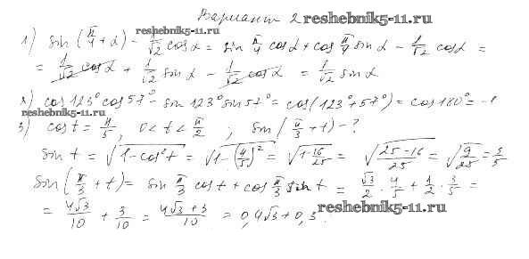 Готовая домашняя работа с ответами по Алгебре за 10 класс Александрова Самостоятельные работы Базовый уровень Мнемозина 2017 ФГОС - СР-25. Синус и косинус суммы и разности аргументов вариант 2
