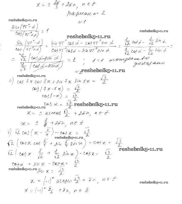 Готовая домашняя работа с ответами по Алгебре за 10 класс Александрова Самостоятельные работы Базовый уровень Мнемозина 2017 ФГОС - СР-26. Синус и косинус суммы и разности аргументов вариант 2