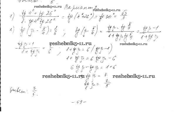Готовая домашняя работа с ответами по Алгебре за 10 класс Александрова Самостоятельные работы Базовый уровень Мнемозина 2017 ФГОС - СР-27. Тангенс суммы и разности аргументов вариант 2